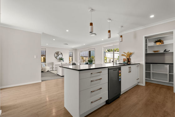 Step inside and you're welcomed by a layout designed around connection. At the heart of the home, the open-plan kitchen, dining and living area brings everyone together " a warm, social space where meals, conversation and daily life naturally unfold. The kitchen is beautifully practical with generous bench space and a walk-in pantry that keeps everything organised behind the scenes, allowing the main space to remain clean and streamlined.