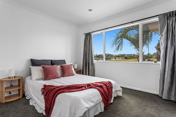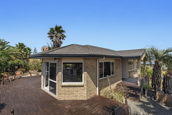 Elevated above the surrounding homes on a 697sqm (approx.) section, 34 Ohuirehe Road enjoys expansive ocean views stretching across the Coastlands district and beyond. Built in 2005, this solid brick residence combines generous living spaces with an outlook that is hard to ignore.