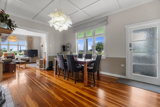 As you step inside, you are greeted by a welcoming atmosphere. The home features warm polished timber floors, three spacious bedrooms, a separate kitchen, an open-plan dining and lounge. A heat pump, and in-built wood burner, add warmth, plus two other decorative fireplaces adding charm. The bathroom is conveniently located to serve the needs of the household with a claw foot bath and a separate shower. A separate toilet and separate laundry add to convenient family living. Two covered porches provide restful spaces to sit back, relax and enjoy the garden and views.