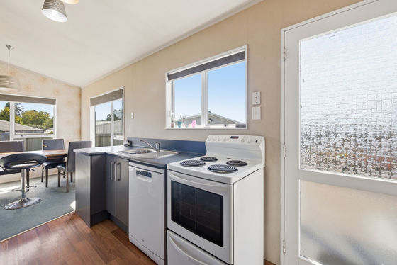 The kitchen has great storage and a near-new dishwasher and is open plan with the dining area. Two generous double bedrooms and a single bedroom are located near the bathroom and separate toilet. Being situated in Ngongotaha, the sun-block blinds come in handy!