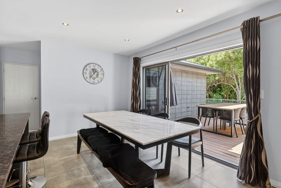 Inside, the home is designed for both everyday ease and effortless connection. The open-plan kitchen, dining and living space forms the heart of the home, where family life unfolds beside the warmth of the gas fireplace. Sliding doors open seamlessly to the deck, creating an inviting flow outdoors for entertaining, long lunches, or relaxed evenings surrounded by greenery.