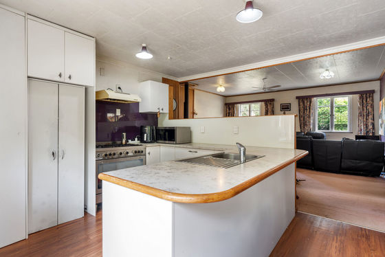 The weatherboard home is positioned to enjoy views across the surrounding land and countryside. Outdoors, the decking provides a great place to sit back and take in the peaceful setting, while the home itself offers comfortable living and the opportunity for buyers to update and add value over time.