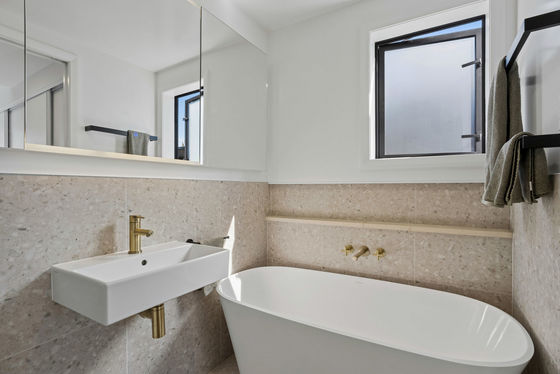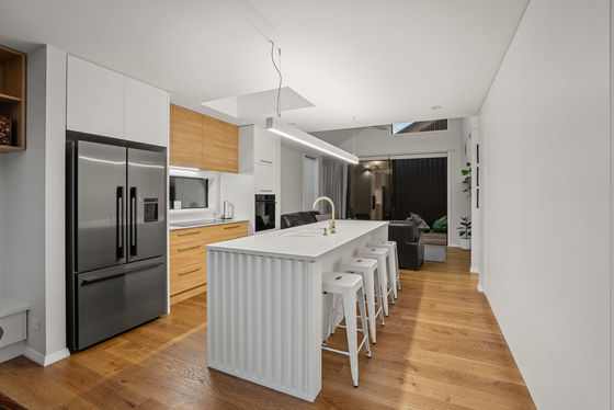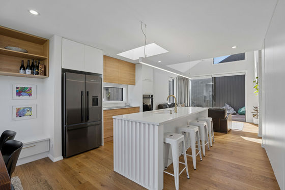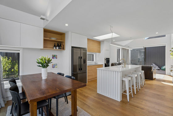 A high level of attention has been paid to the home's thermal performance and durability, with features including 90mm and 140mm external framing, Low-E argon-filled glazing and a Rib Raft foundation. Large windows, strategic shading and cross-ventilation enhance natural light while supporting passive heating and cooling throughout the seasons.