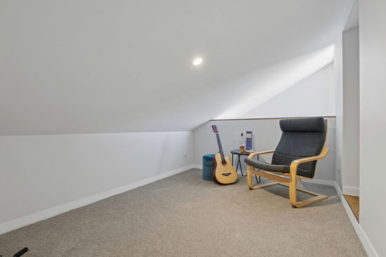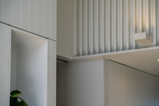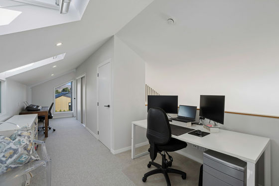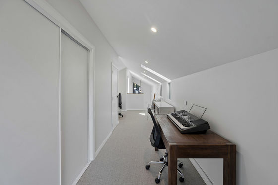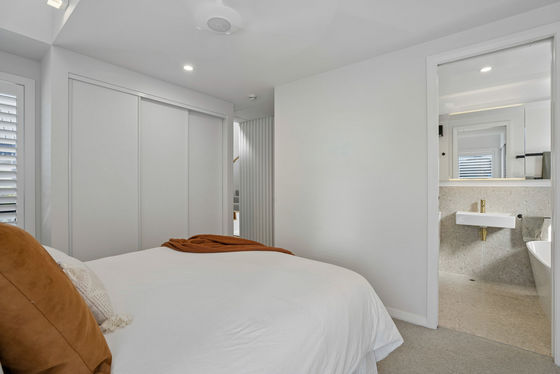 Accommodation is thoughtfully arranged, offering four well-proportioned bedrooms and two elegantly appointed bathrooms with a separate powder room. Clever spatial planning ensures the home feels substantially larger than its footprint, with flexible spaces that can easily adapt for a home office, media room or additional living areas as needs evolve. A particularly special design detail is the private suite discreetly concealed behind a feature timber screen and full-height 2.4m solid-core pivot door with magnetic closure"an understated architectural element that creates a sense of retreat within the home.