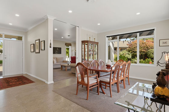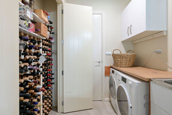 Over height ceilings, wide hallways and a thoughtfully designed layout feature a spacious open plan with a separate sophisticated formal lounge warmed by a gas fire, and formal dining and casual living bathed in bright natural light. The heart of this home is the centrally placed sleek modern kitchen and adjacent scullery with beer/wine fridge, with seamless indoor/outdoor flow to picturesque gardens abundant with a variety of fruit trees and a grapevine covered pergola lending a distinct Tuscan vibe for effortless alfresco dining and entertaining. The 245 bottle wine cellar probably helps too!