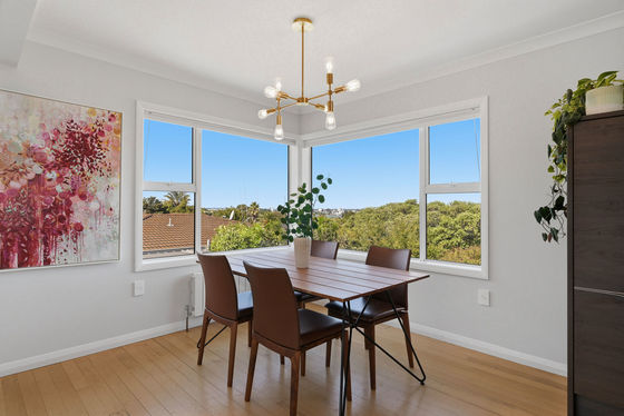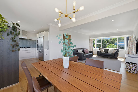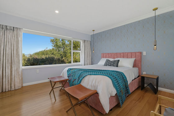 A classic example of quality building from the 1960s era, on a large elevated site with a delightful flat front yard enclosed by established trees, this home ticks all the boxes: great location, solid construction and most definitely move in ready. Modernised throughout with double glazing, gas central radiant heating, fresh décor with stylish statement wallpaper accents, original feature scotia, curved walls and native timber floors combine to create a warm and inviting ambiance. From the wide front deck, bright teal entrance door, sunny living bathed in bright sunshine, to the expansive urban views over neighbouring treetops and the inner harbour beyond, this home has maximized appeal.