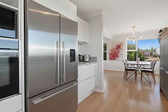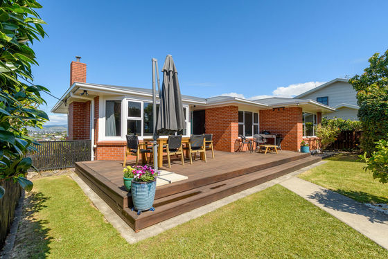 The sleek contemporary kitchen and spacious open plan living ensure day to day life and entertaining is a breeze, while down the hall three large bedrooms share a tiled bathroom designed and executed with style. The panoramic view from the master is both noteworthy and surely a delight to wake up to every day. Take the stairs down to an office, chic laundry, second bathroom and single garage currently set up as a home gym. A delightful surprise is the lower rear section, abundant with a variety of fruit trees. With the added bonus of off-street parking, there is plenty of room for a family, those looking to downsize or those making a start on the property ladder.