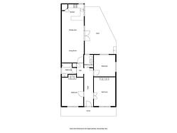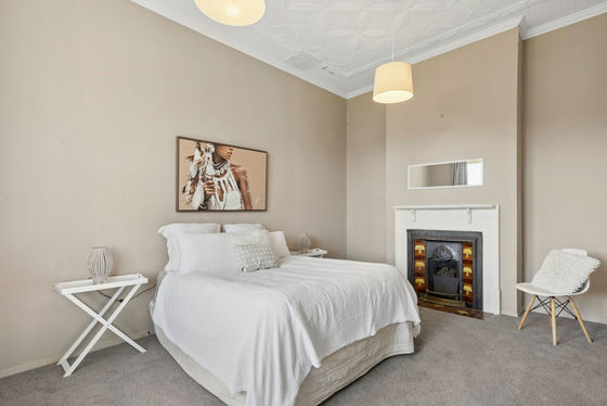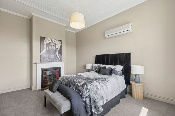 The modern open-plan kitchen and dining area seamlessly flow into the lounge, creating a versatile space for family living and entertaining. Three generously sized bedrooms, offering gorgeous pressed tin ceilings, are thoughtfully arranged along a wide central hallway, offering comfort and practicality.