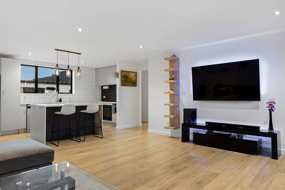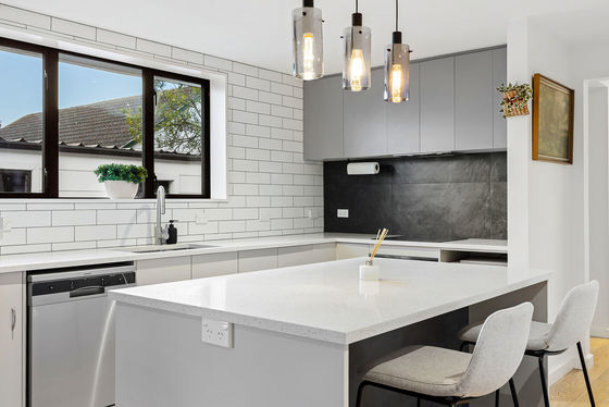 The kitchen connects easily with the main living areas, creating a relaxed hub where everyday life unfolds. Large windows allow natural light to pour in, while great indoor-outdoor flow makes entertaining easy and enjoyable.