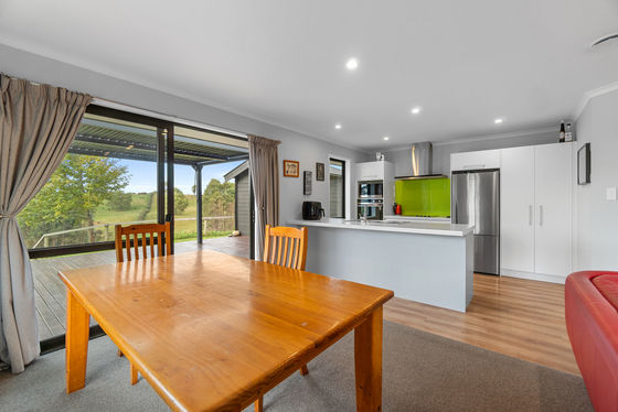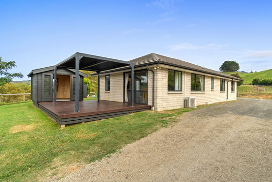 Inside, the open-plan kitchen and living area make it easy to host friends or relax with family. You'll stay cozy all year round thanks to a heat pump and great insulation. Outside, the yard is fully fenced to keep kids and pets safe, and the large deck is the perfect spot to soak up the stunning rural views towards kakepuku montain. There is also a singe internal access garage and a handy single garage size man cave for your garden tools and toys.