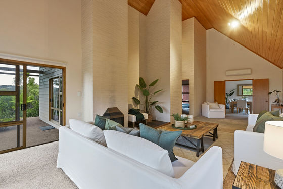Constructed in solid concrete block and classic cedar weatherboard, the home offers a robust foundation for renovation or reinvention. The main living area features striking cathedral ceilings, creating a sense of space and drama that's rare to find. With three separate living rooms, a dedicated office, and a separate laundry, the layout is generous, flexible, and full of potential.