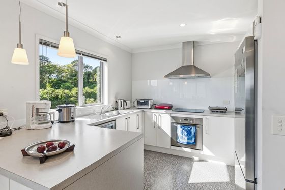 The sunny open plan living, dining and kitchen on the ground level has access to a spacious deck outside making entertaining a real pleasure. The kitchen is equipped with modern quality appliances, including an under-bench oven, electric cooktop, range hood, dishwasher and waste disposal unit. The study is perfect for remote work, study, as a potential guest bedroom or a quiet space to relax and read. The guest toilet has a handwash and there is internal access to the garage.