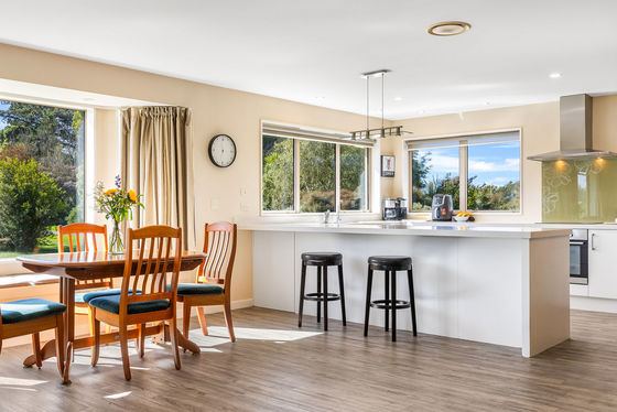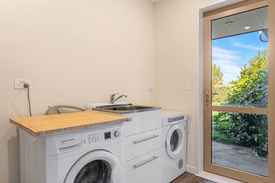 A separate laundry keeps the working end of the home in order, the heat transfer system extends the reach of the log burner, vegetable gardens bring self-sufficiency into the mix, and internal-access double garaging with ample off-street parking keep the functional side equally well supplied.