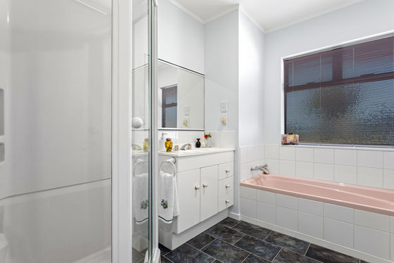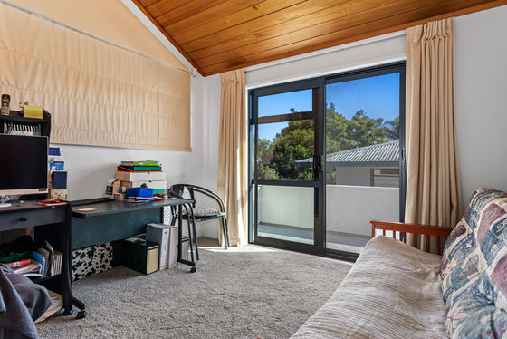 Accommodation is spread across both levels, offering separation and flexibility. Downstairs includes two bedrooms, supported by a bathroom with bath, shower and a separate toilet. Upstairs, the master suite is well appointed with an ensuite featuring twin vanities. Adjoining this space is a large office or optional fourth bedroom, opening to a sunny balcony that captures light throughout the day.
