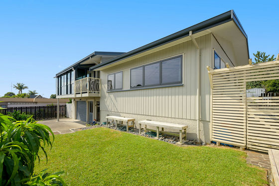 It's not often a first home comes along with this much to offer. Elevated to capture Mount and water views and stunning sunsets, this solid 1960s home is brimming with space, character, and practical extras that make everyday living easy.