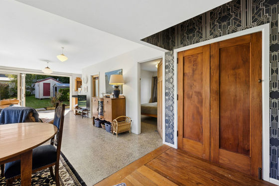 The open-plan living area is warm and inviting, complete with a handy office nook tucked discreetly away. Character features shine throughout, with polished concrete floors in the newer addition complementing the charm of original wooden flooring. Bifold doors open seamlessly to the rear patio, creating excellent indoor-outdoor flow.
