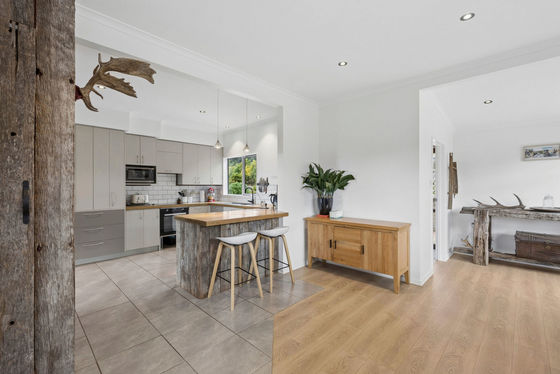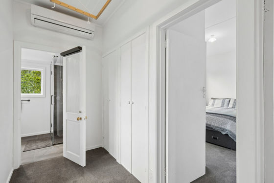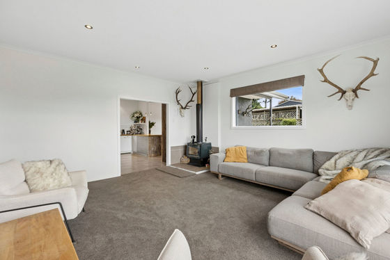 The modern bathroom is well positioned near the bedrooms, while a separate laundry with a second toilet adds practicality and convenience, with easy access to the rear section. Heating is well catered for with 2 well placed heat pumps and a wood burner, keeping the home cosy through the seasons.