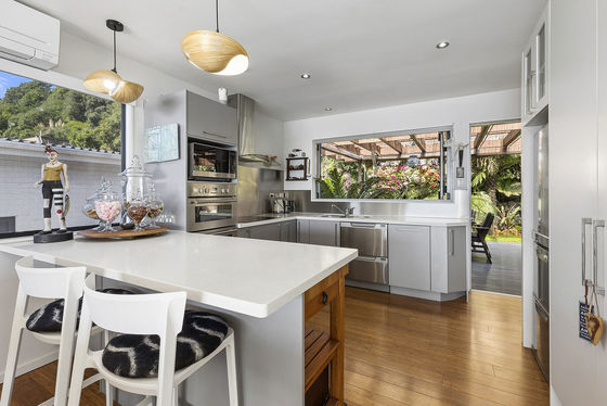 The kitchen is a standout, showcasing stone benches, modern appliances and a sleek contemporary aesthetic. The lounge is designed to maximise the coastal panorama, with bi fold doors that open seamlessly to a sun drenched deck overlooking the water " the perfect vantage point for morning coffee or unforgettable sunsets.