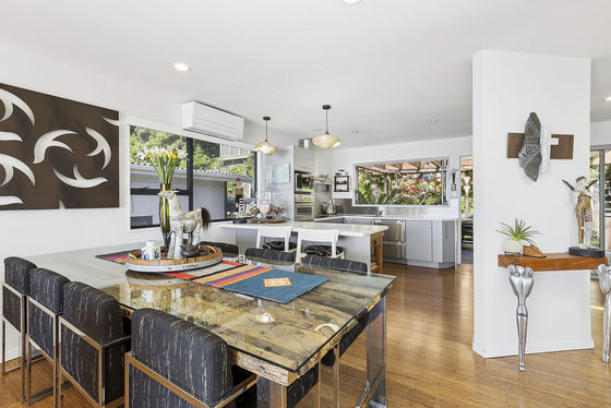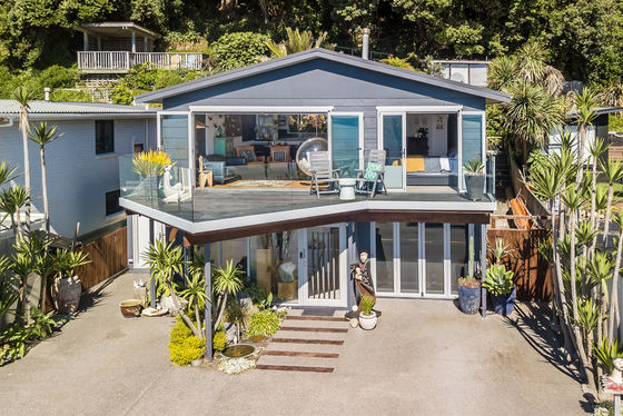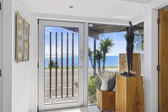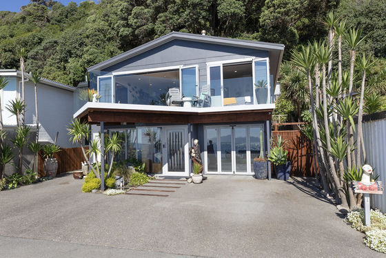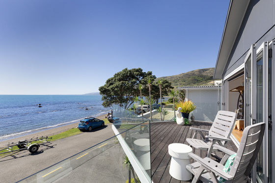 Upstairs, the main residence opens to sweeping, uninterrupted views of the ocean and Kapiti Island. The master bedroom enjoys these captivating outlooks along with a generous walk in wardrobe and a large, indulgent ensuite featuring a spa bath, shower, toilet and a beautifully designed his and her vanity.