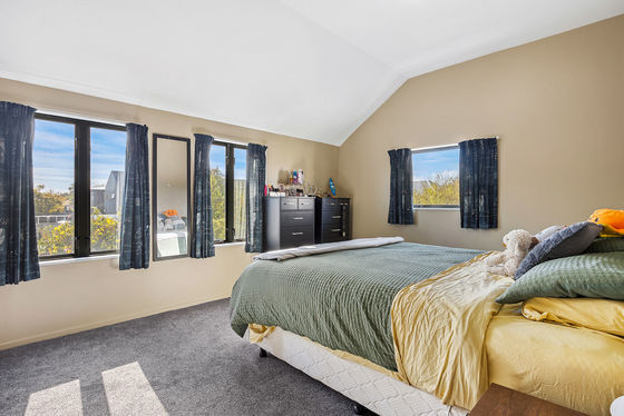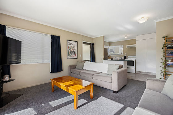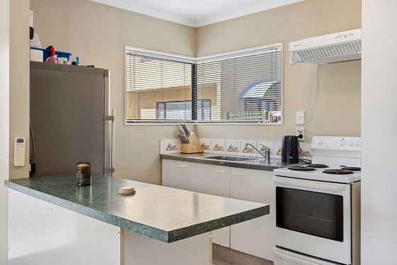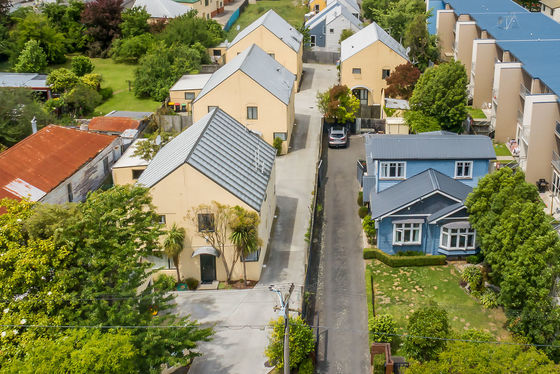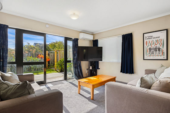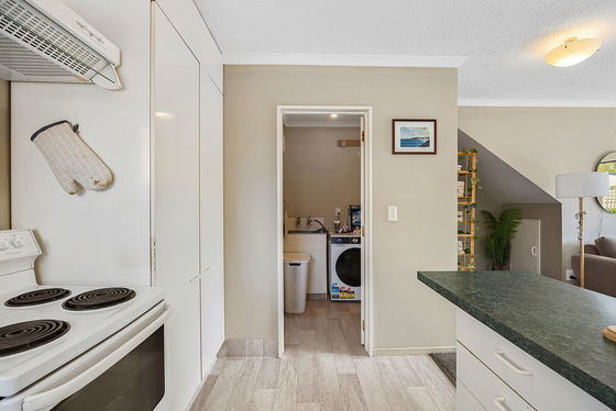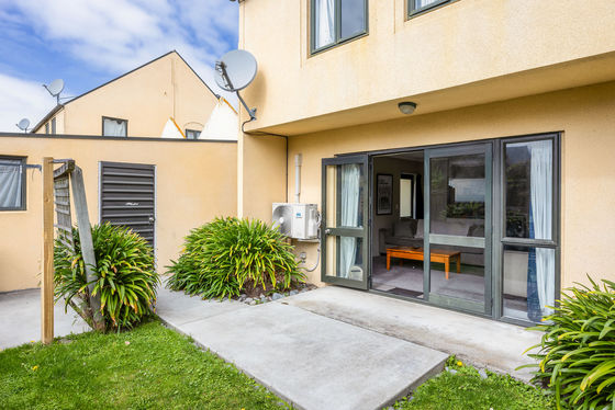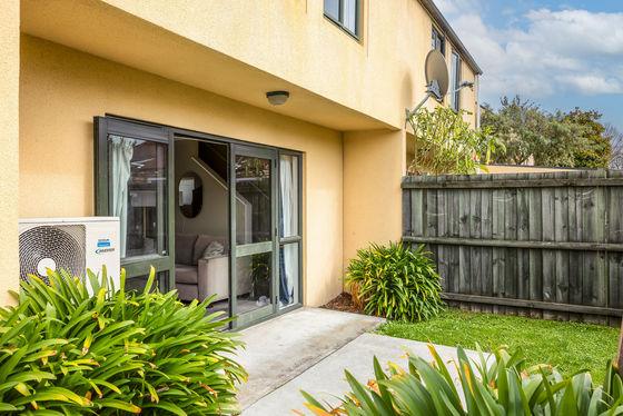 These two-bedroom townhouses offer an open-plan kitchen, dining and living. Sunny and spacious living area with heat pump. Room for dining table under stairwell or office space. Good indoor-outdoor flow to courtyard and garden area. Upstairs has two double bedrooms with built-in wardrobes. Bathroom with shower over bath, vanity and toilet. Good storage cupboard in hallway.