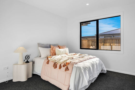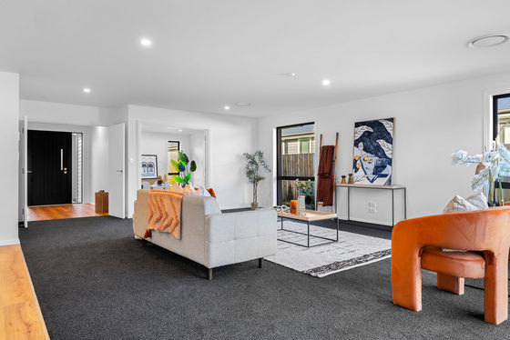 Positioned on a generous 800sqm section, this thoughtfully designed home offers approximately 310sqm of well considered living, delivering both space and comfort for families of all sizes. From the moment you step inside, the attention to detail is clear, with quality finishes and a layout that has been tailored for modern living. At the heart of the home is a sleek, contemporary kitchen that connects with open plan dining, creating a central hub perfect for everyday living and entertaining. A separate lounge provides flexibility, offering a quiet retreat or additional living space when needed. The accommodation is well appointed, featuring four generous bedrooms. The master bedroom includes a walk-in wardrobe and an ensuite with a tiled shower. The other bedrooms share another bathroom and toilet for convenience. A separate laundry is an added bonus. Comfort is fully covered with a ducted heat pump system, double glazing, and excellent insulation, ensuring year-round climate control.