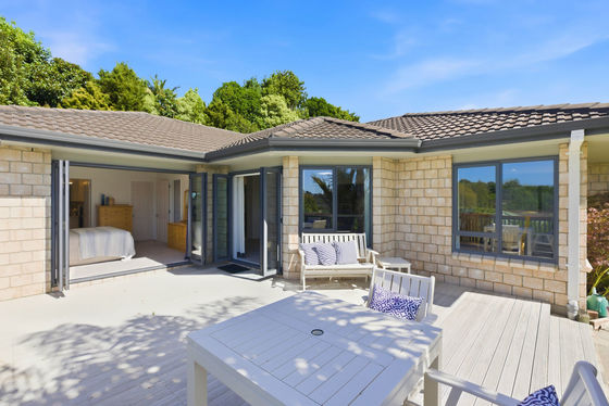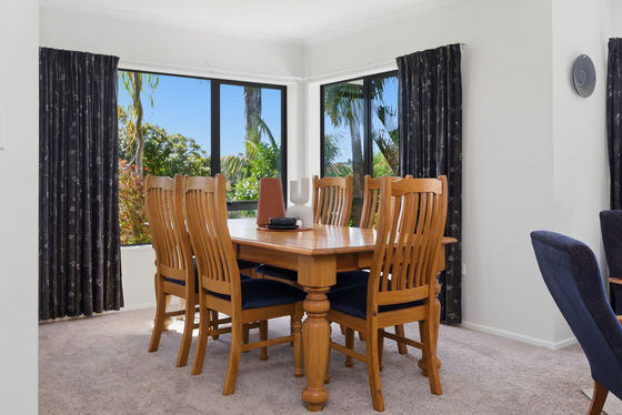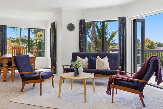 Step from the indoor living straight onto an elevated deck with sweeping views of rolling rural hills towards Mount Maunganui - ideal for alfresco dining or sunny brunches.