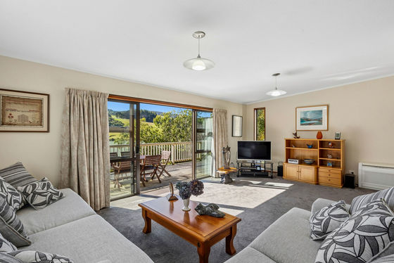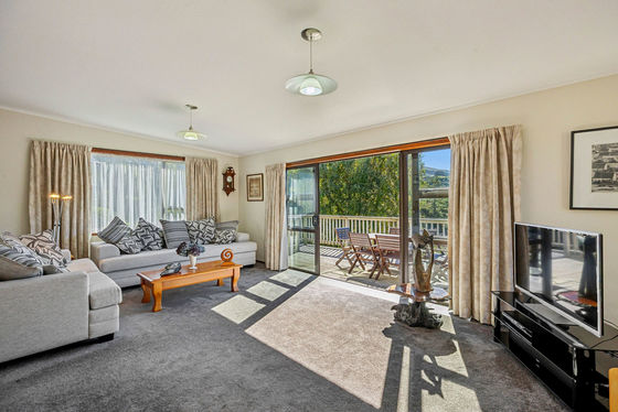 The separate kitchen connects to the open-plan dining and lounge area"pass meals through the convenient servery or walk through to the heart of the home. From here, sliding doors lead out to a spacious deck, perfect for relaxing or entertaining, and onward to a private, established garden and lawn.