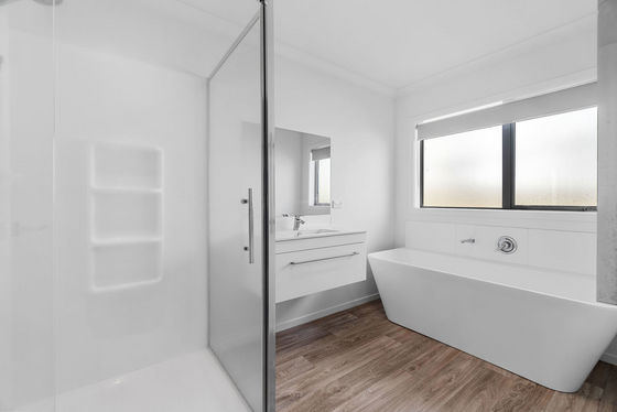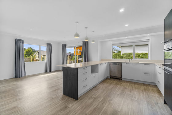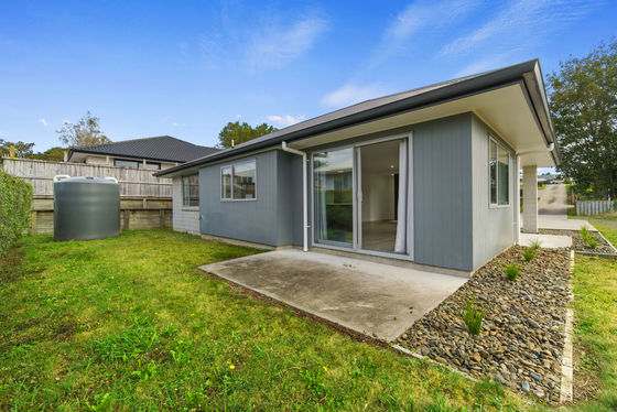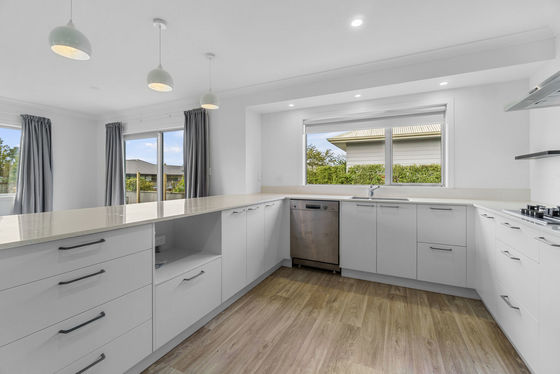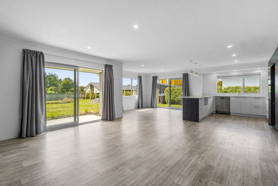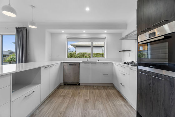 The heart of the home is the bright, open plan kitchen and dining area. Cooking is easy with modern appliances like a gas cooktop and dishwasher, and the lounge is a warm, inviting space for family time. You'll stay cosy all year round thanks to a heat pump and double glazed windows, which keep the house quiet and well insulated.