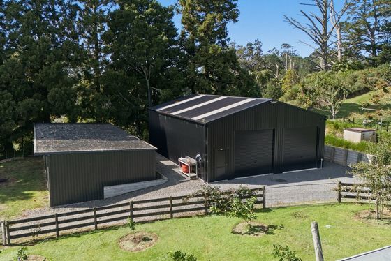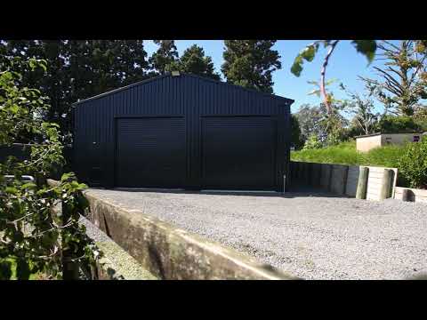 A large high-stud three-bay shed with high roller doors " perfect for the boat, camper, or workshop.