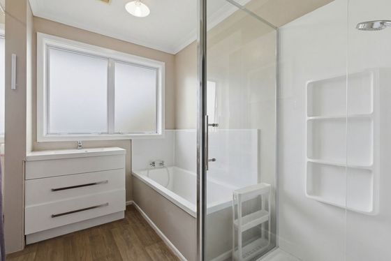 The current 1950s home provides five bedrooms, open plan dining and family living, a separate kitchen, and a single garage. Constructed in weatherboard with a long run steel roof, it offers a solid starting point, but the home is clearly ready for a full redecoration or more extensive work.