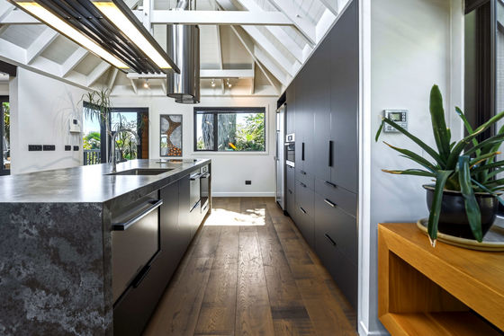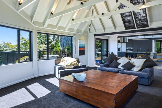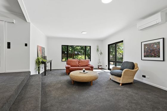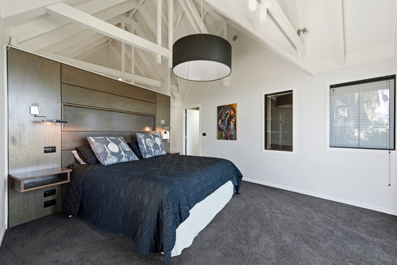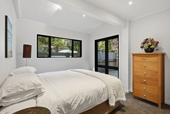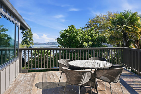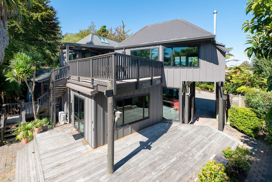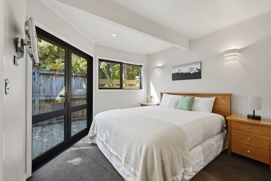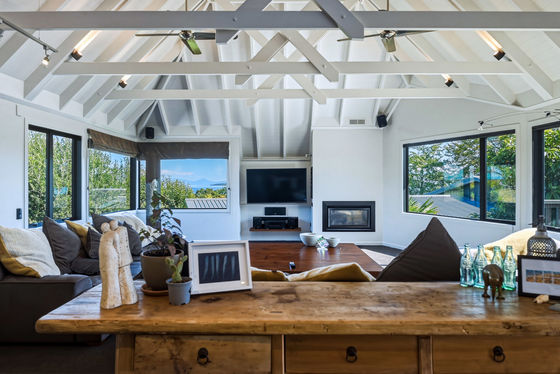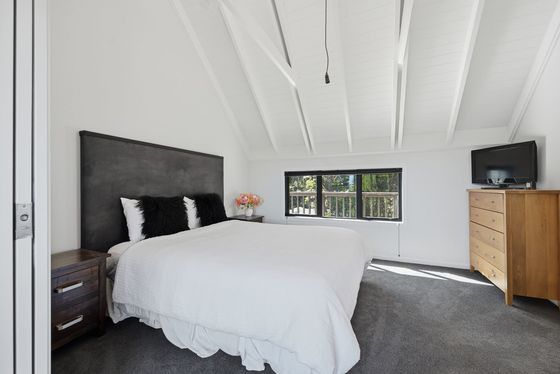 Upstairs is the main hub, with a beautifully appointed new kitchen flowing into open-plan living and dining, and out to an elevated deck capturing stunning views. This level also includes an additional bedroom with ensuite, along with a generous master suite complete with dressing room and ensuite.