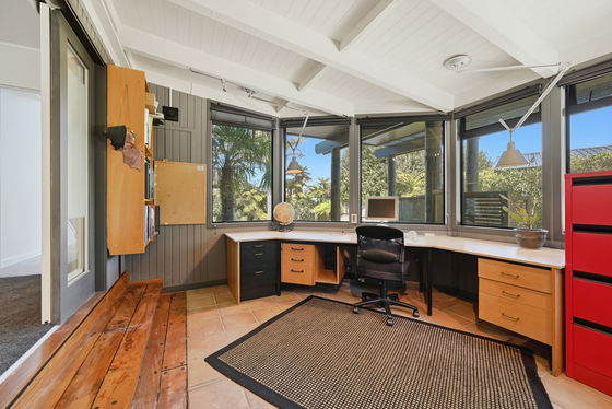Downstairs features two bedrooms (one with ensuite), a separate main bathroom, a dedicated office with original cottage charm, and a second living area that opens to a large deck and private gardens.