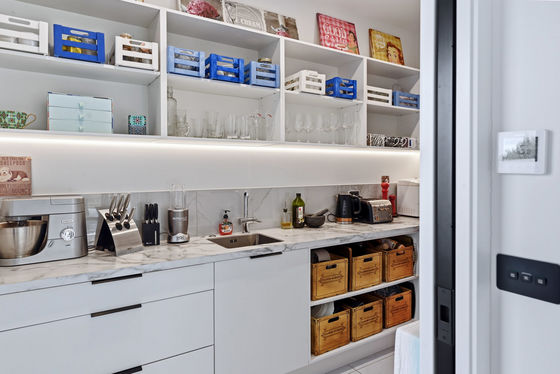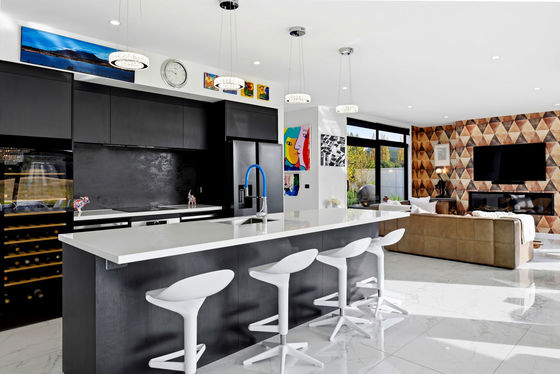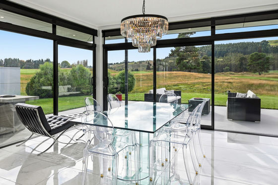At the heart of the home, expansive open-plan living and dining areas are framed by floor-to-ceiling glazing, drawing in uninterrupted views across the golf course and beyond. The kitchen is both functional and refined, complete with a well-appointed scullery, and positioned to remain connected to everyday living and entertaining.