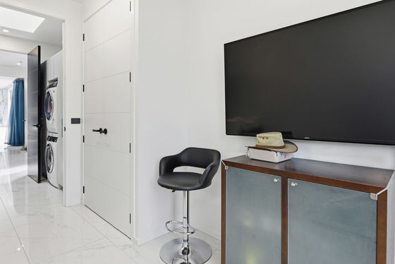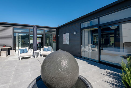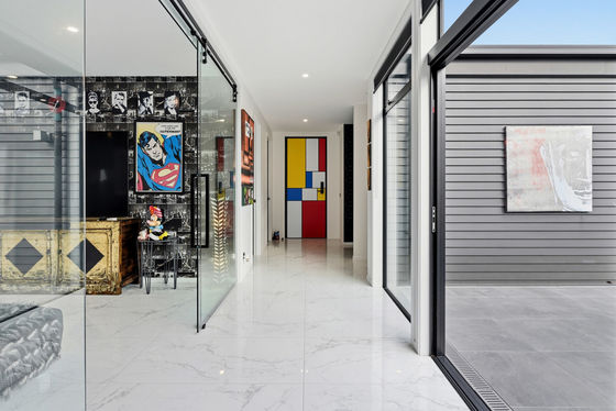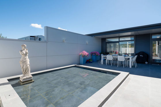 Outdoors, the landscaping has been carefully curated to create a series of intimate spaces " including tiled courtyards, reflection ponds, and sheltered areas to enjoy the changing light across the fairways. There is ample space for additional vehicles, including boat or motorhome parking, without compromising the clean aesthetic of the property.