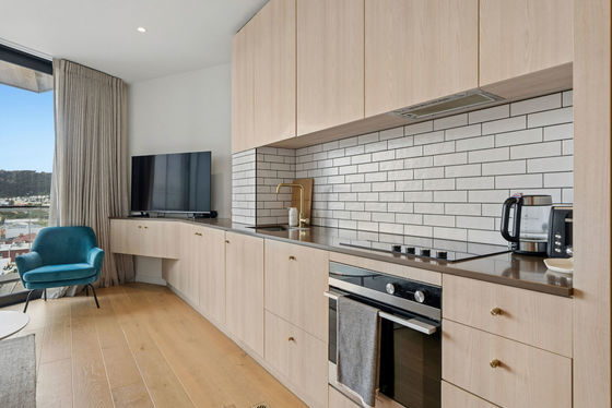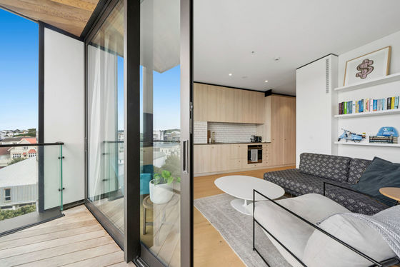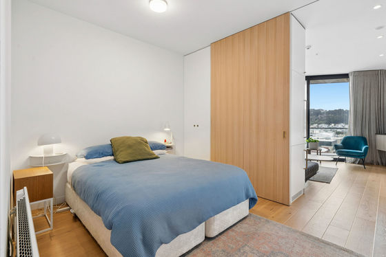 Located within an award winning architecturally designed complex by Designgroup Stapleton Elliott and completed in 2021, this northeast facing apartment on the 5th floor captures exceptional morning and afternoon sun, with sweeping panoramic views across the city and harbour, setting it apart from others in the complex.