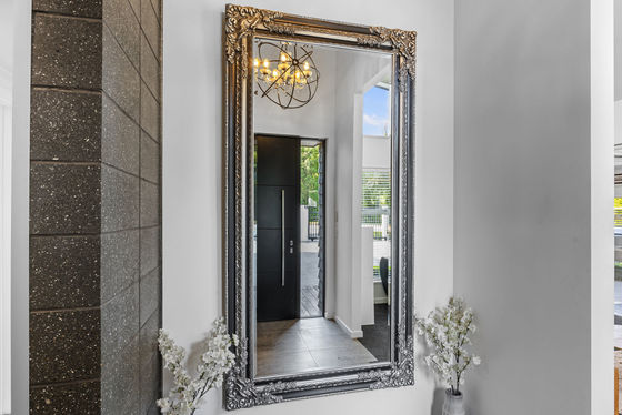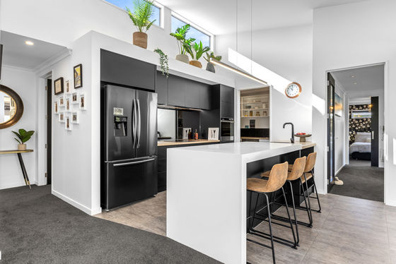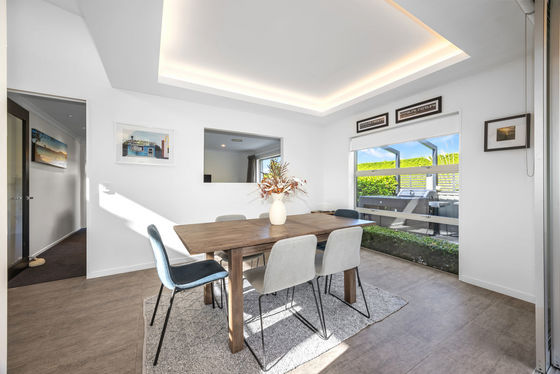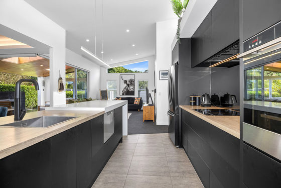 From the moment you step inside, you'll feel at home. Clean architectural lines, a striking raked ceiling, and a light-filled open-plan layout create an immediate sense of style and space, all centred around a sophisticated designer kitchen. A well-appointed butler's pantry, complete with its own dishwasher, oven, and sink, adds both luxury and practicality.