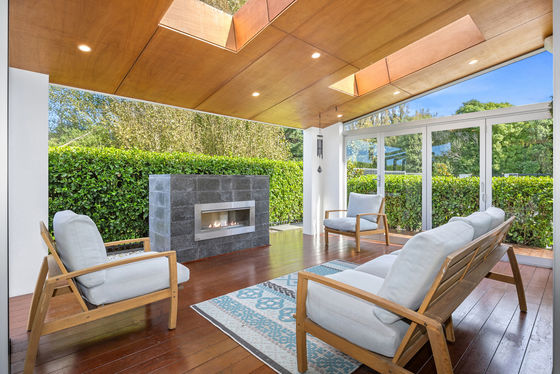 The true centrepiece of the home is the remarkable alfresco entertaining area. Seamlessly connected via pillarless stacker doors, this covered outdoor retreat has been designed for year-round enjoyment. Skylights flood the space with natural light, while the gas fire and striking ply-lined ceiling create warmth, ambience, and a sense of privacy. Whether entertaining guests or unwinding at the end of the day, this is a space that truly sets the home apart.