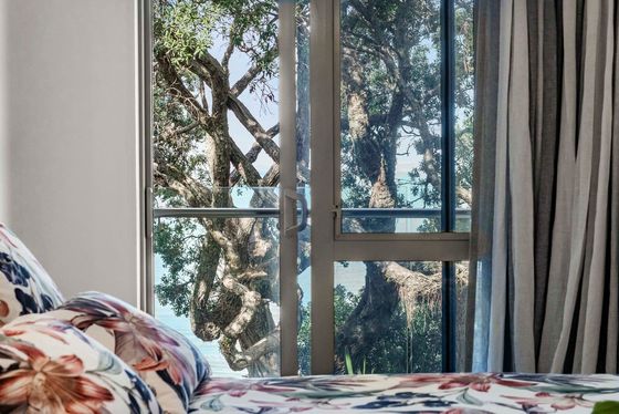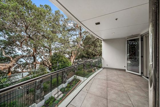 Comprising two double bedrooms plus a study, the apartment is arranged entirely on one level and offers effortless, low-maintenance living. The main living has been recently upgraded, featuring new flooring and a beautifully appointed kitchen with granite benchtops, quality cabinetry and modern appliances. This space connects seamlessly to the dining and lounge, all oriented to capture filtered views through the trees to Takapuna Beach.
