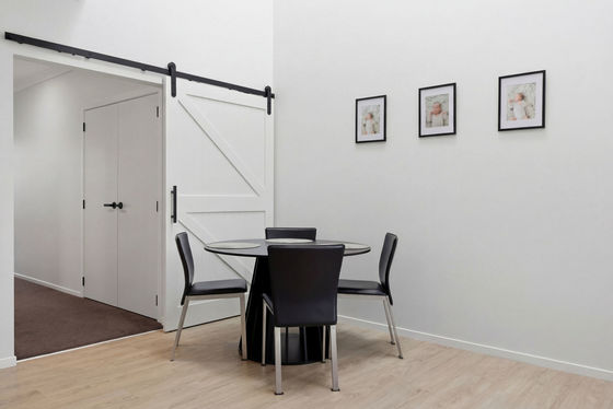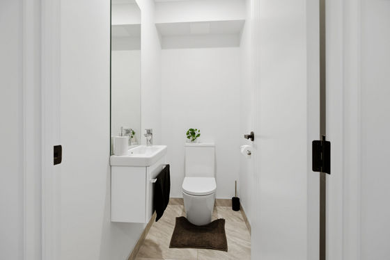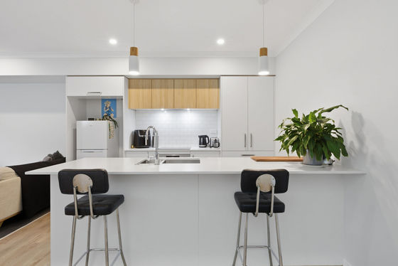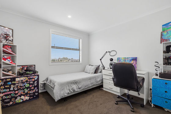Downstairs features a welcoming entrance hall, a single carpeted internal access garage with integrated laundry, and bespoke high-end finishes - far from your average new build. An attractive barn door leads from the foyer into the dining area, where an impressive, vaulted ceiling and skylight create a real sense of space and light.