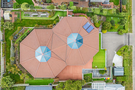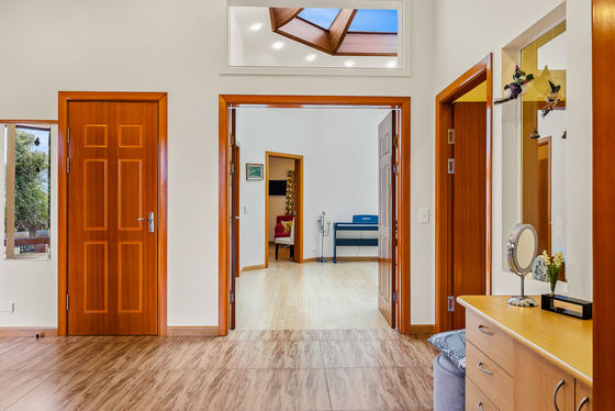 Two interconnected octagonal forms create a striking structure, where high ceilings introduce volume and light. Above, double glazed ceiling roses frame the sky, bringing a constant sense of movement and connection to the elements. Living spaces open to front-facing balconies, extending naturally toward the coastal landscape and supporting both relaxed living and entertaining.