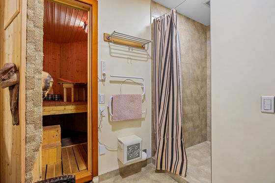 The layout is thoughtfully arranged, balancing openness with a sense of privacy throughout. Below, a fully self-contained level with kitchen and bathroom facilities offers flexibility for guests, extended family, or use as a media or games space. A built-in sauna, with its own bathroom amenities, adds a considered element of relaxation and retreat.