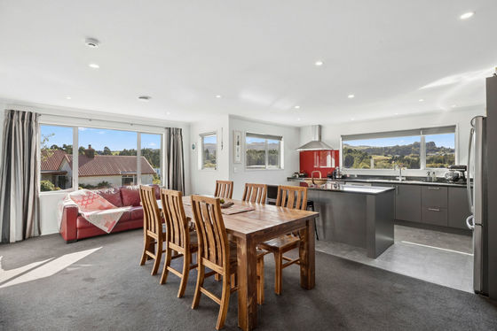 • Open-plan kitchen and living with island bench, office nook, and outlook
