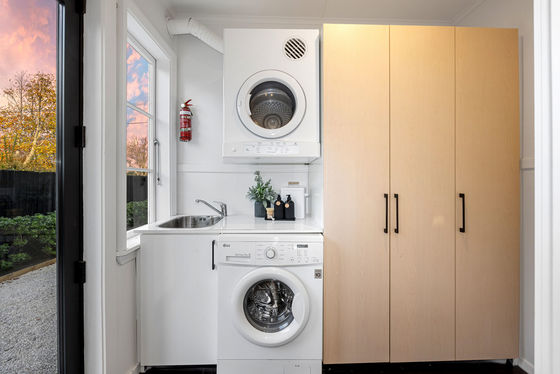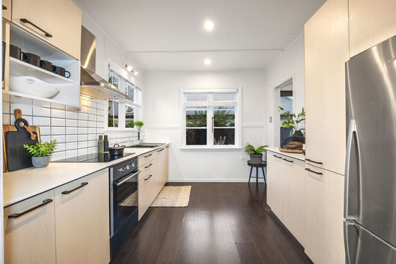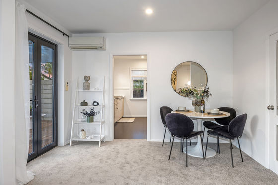 Beyond its traditional weatherboard exterior, the interior changes the pace, with the kitchen brought up to speed through streamlined style and generous bench space before opening to the dining area and lounge, where a heat pump and double glazing keep comfort in check.
