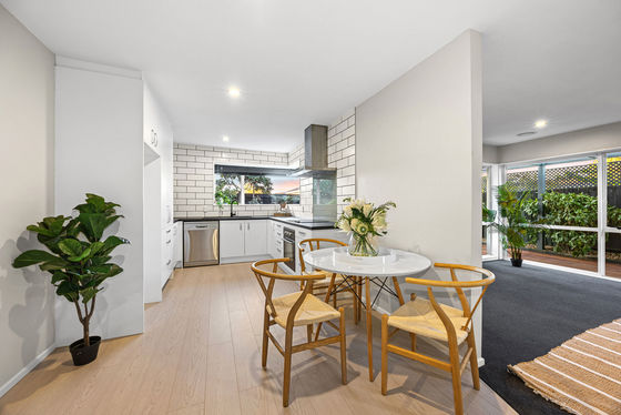 Two bedrooms provide practical accommodation, while the living layout strikes a smart balance between connection and definition, with the open-plan layout offering a space for dining before curling around to the lounge, giving daily living greater flexibility and function.