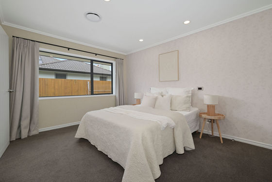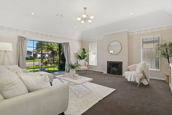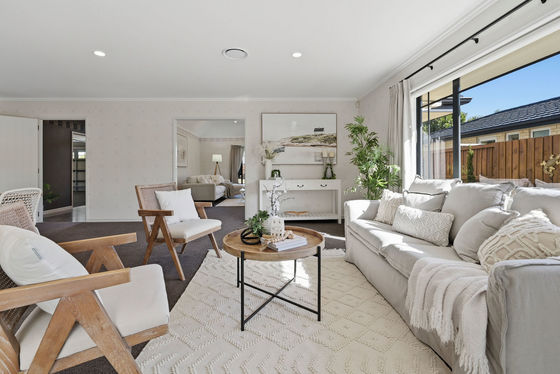 Inside, the home opens to light, space, and calm. High stud ceilings lift every room, while two separate living areas give you the freedom to come together or unwind in your own space. The main lounge, complete with a gas fire, becomes the cosy hub through winter.
