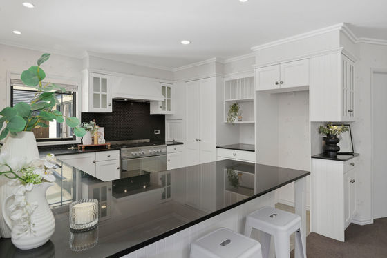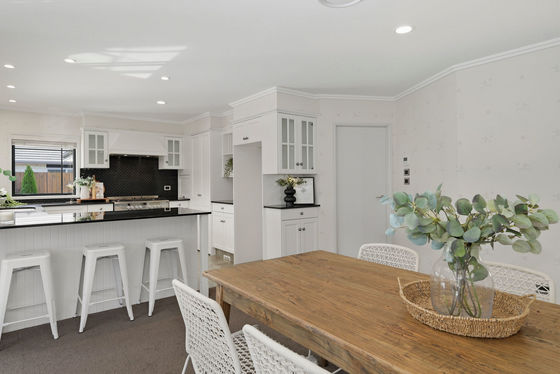 At the centre of the home, a heritage-style kitchen brings warmth and character, connecting easily to both living areas and the outdoors. It's a home designed for everyday ease, relaxed, practical, and welcoming.