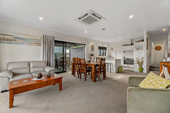 Step inside and you're immediately welcomed by a light filled, open plan living space, where large windows and stacker sliders capture all day sun and create a warm, inviting atmosphere year round. The layout has been thoughtfully designed, offering seamless flow between the kitchen, dining and living areas ideal for both relaxed family living and entertaining.