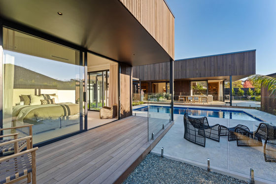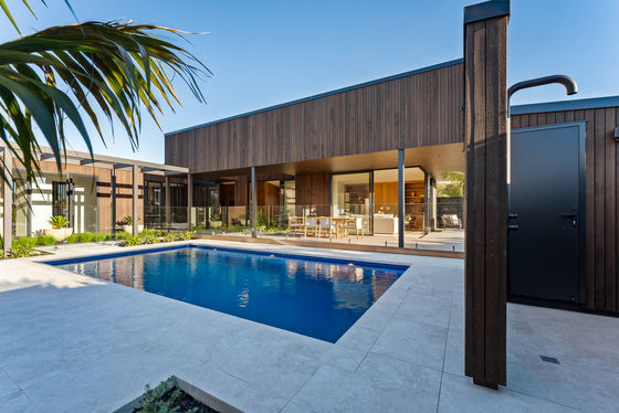 Brand new, single level, inspired luxury and exceptional privacy. Vibrantly designed by award winning architect - Dorrington Atcheson, north facing, with the kind of architectural confidence that stops people mid-scroll. Warm timber cedar cladding wraps the exterior in long clean lines. A pergola-framed pool terrace sits at the heart of the home - a home that makes you feel like you're in Palm Springs, until you look out to the surrounding Matakana countryside.