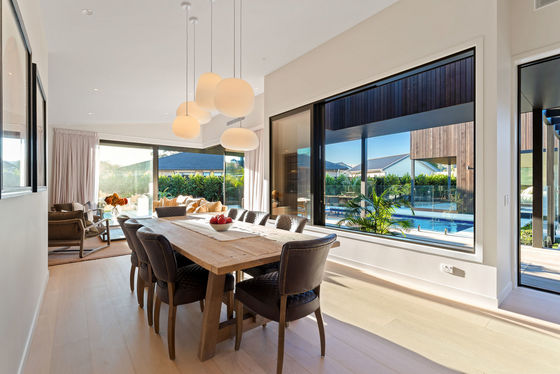 Three - four bedrooms, two bathrooms, and high stud living spaces that open fully to the deck and heated pool. The indoor-outdoor relationship here isn't an afterthought - it's the whole point.