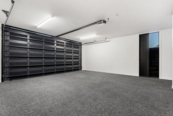 • Carpeted double garaging with storage